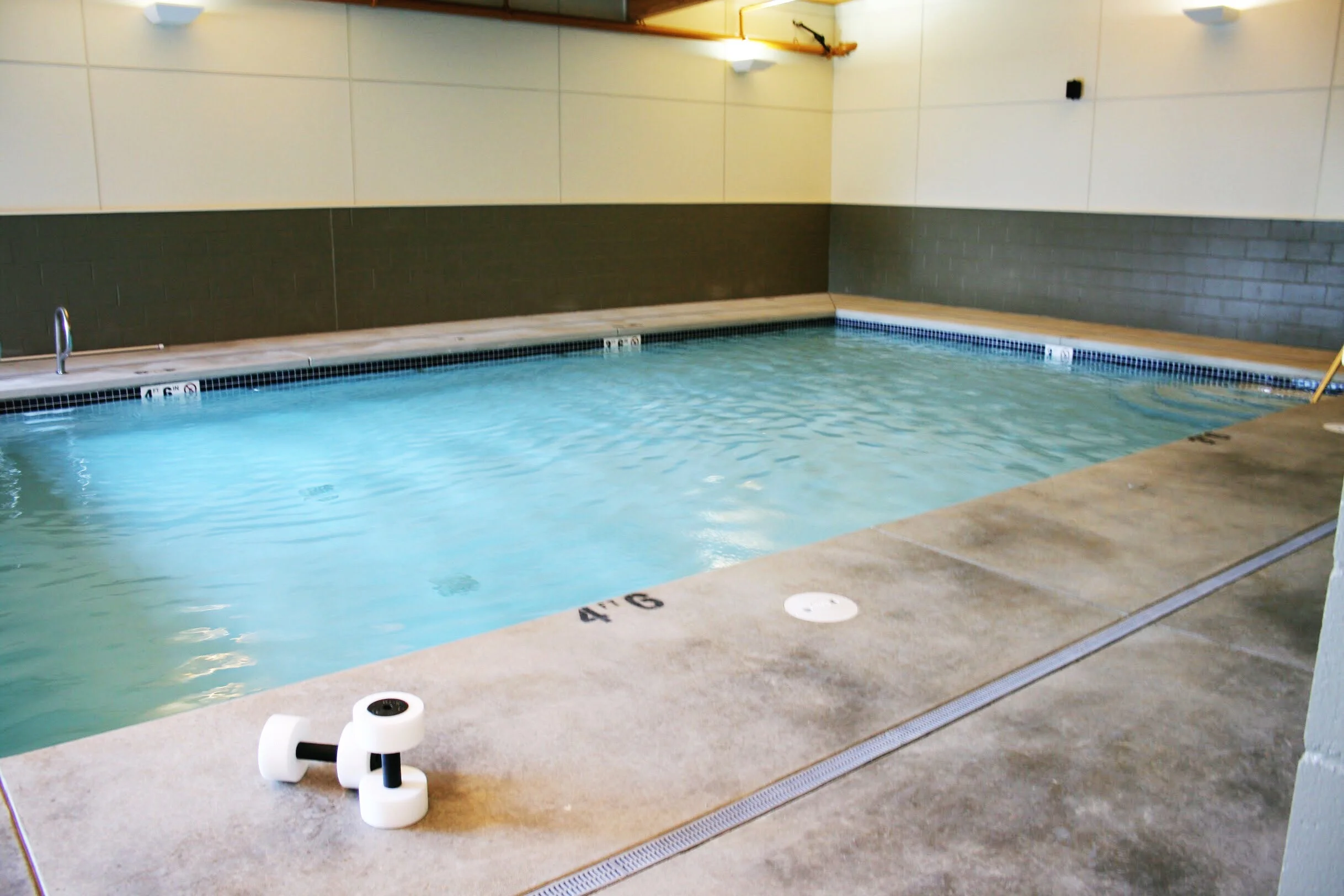 Splash into our pristine pools! Maybe you’re recovering from an injury, looking for exercise that’s easy on those joints, or training for a triathlon. Take some laps or fun water classes in our large pool or ease into our warmer water pool for relaxing and weightless mobility. Then bring those littles and have some splashing good fun during recreational swim times.